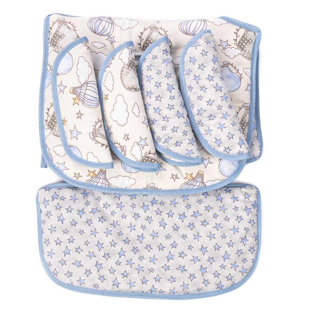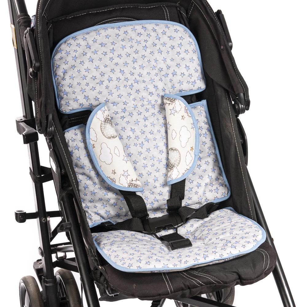 Acompanha dois pares de protetores para cinto, para combinar com as duas faces do produto, deixando assim o carrinho ou bebê conforto ainda mais bonito.